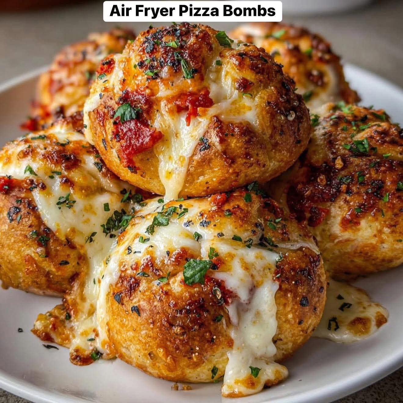Air Fryer Pizza Bombs are everything you love about cheesy pepperoni pizza wrapped into a golden, handheld bite. Buttery biscuit dough is filled with mozzarella, pepperoni, and pizza sauce, then brushed with a garlic-Parmesan butter and cooked until puffed and crisp on the outside with a gooey, melty center. They come together quickly thanks to refrigerated biscuit dough and cook in just a few minutes in the air fryer, making them perfect for game day, parties, or an easy weeknight snack.