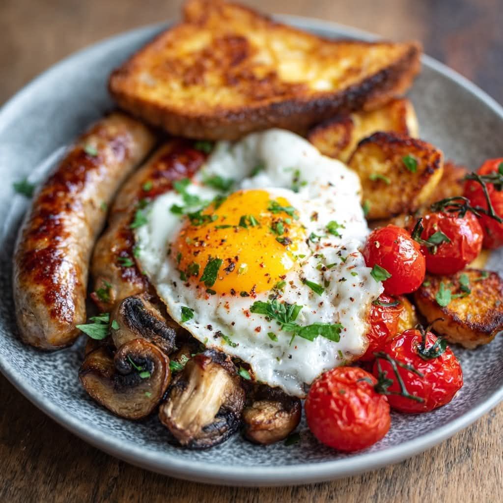 Full English Breakfast — the ultimate hearty morning meal! A traditional British classic that brings together sizzling sausages, golden toast, fried eggs, savory mushrooms, juicy tomatoes, and crispy potatoes — all cooked to perfection. A true comfort breakfast that keeps you satisfied all day long! 🥞🍅🍳 Ingredients 2 pork sausages 2 slices of bread (for … Lire plus