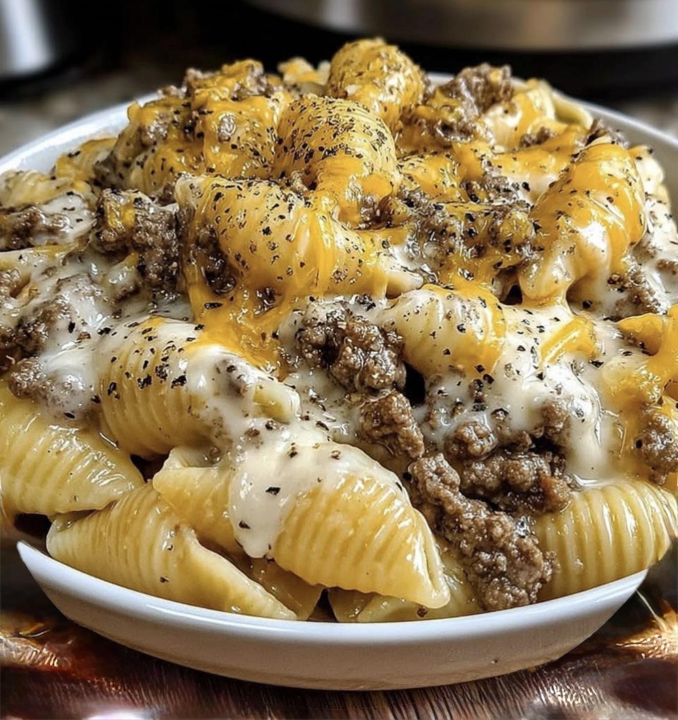 Crockpot Cheesy Ranch Beef Pasta Shells