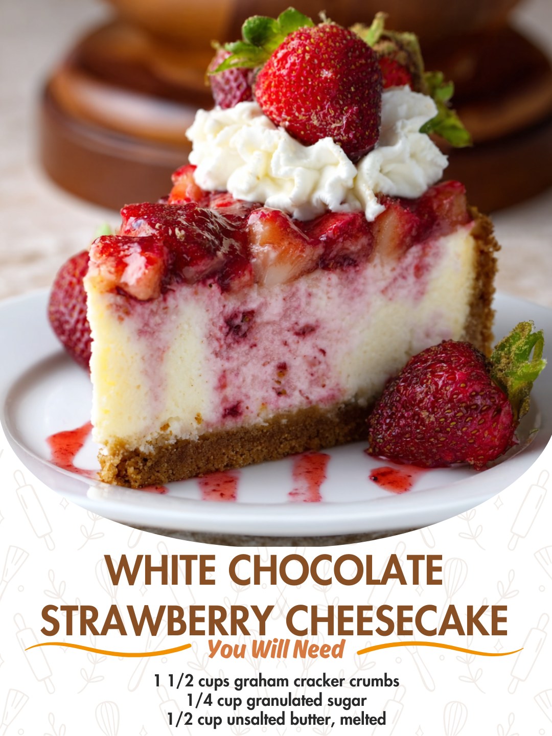 This White Chocolate Strawberry Cheesecake is a rich and indulgent dessert that combines the smooth creaminess of cheesecake with the sweet, vibrant flavor of strawberries and the luxurious touch of white chocolate. With a buttery graham cracker crust and a velvety white chocolate filling, it’s the perfect dessert for any special occasion or when you … Lire plus
