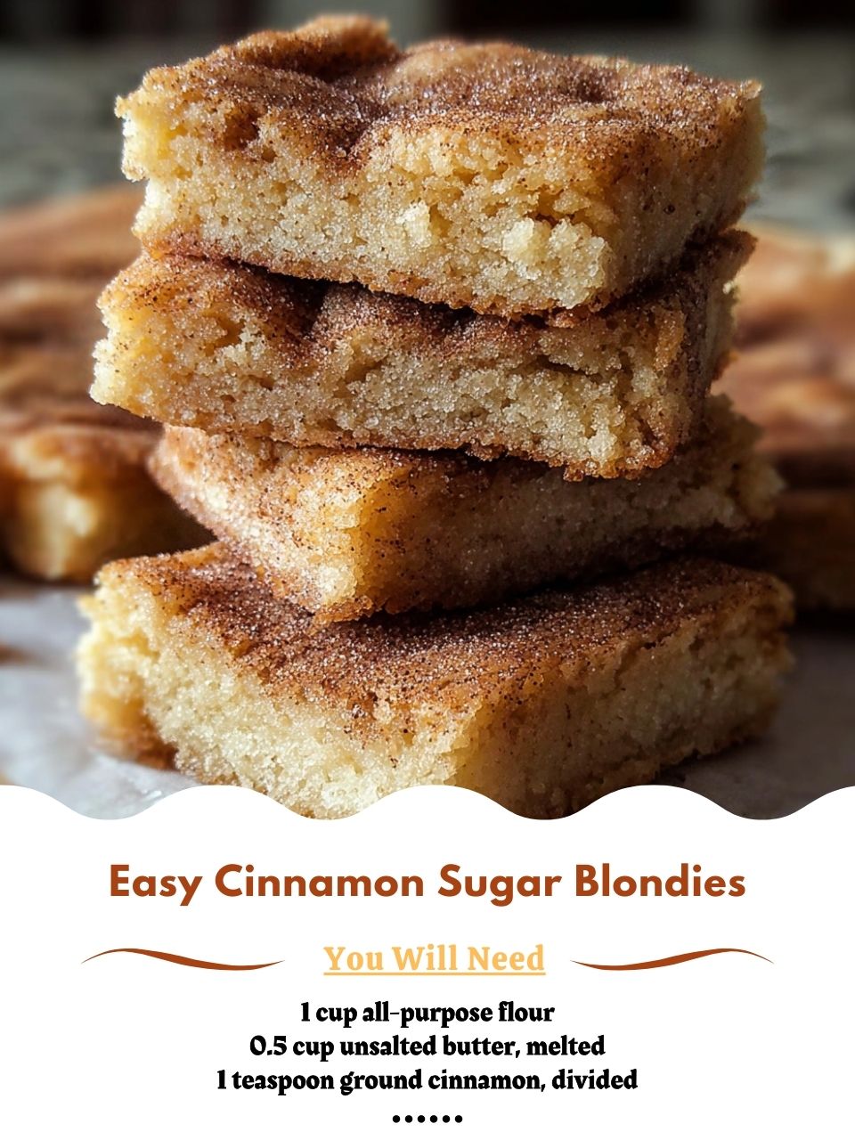 Easy Cinnamon Sugar Blondies These Easy Cinnamon Sugar Blondies are buttery, chewy, and warmly spiced — like a snickerdoodle in blondie form! With a simple batter, no mixer required, and a crackly cinnamon sugar topping, they’re a perfect one-bowl treat for cozy afternoons, potlucks, or whenever you’re craving something sweet and simple. 📝 Ingredients 1 … Lire plus