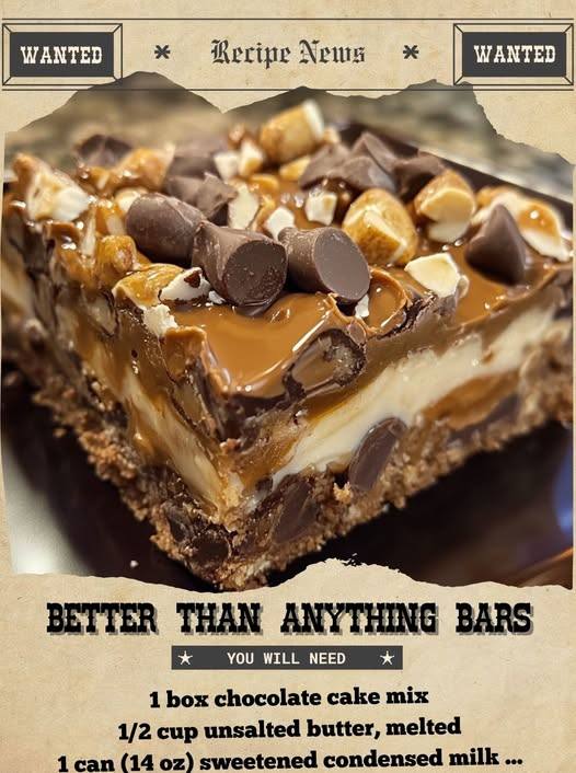 Better Than Anything Bars are an indulgent, decadent treat that combines rich layers of chocolate cake, gooey caramel, sweetened condensed milk, and toffee bits. These bars are as easy to make as they are delicious, with each bite delivering a perfect balance of sweetness and texture. Topped with a layer of whipped topping and mini chocolate chips, these bars are a crowd-pleaser for any occasion, from casual gatherings to holiday celebrations. They truly live up to their name and are sure to become a favorite dessert!