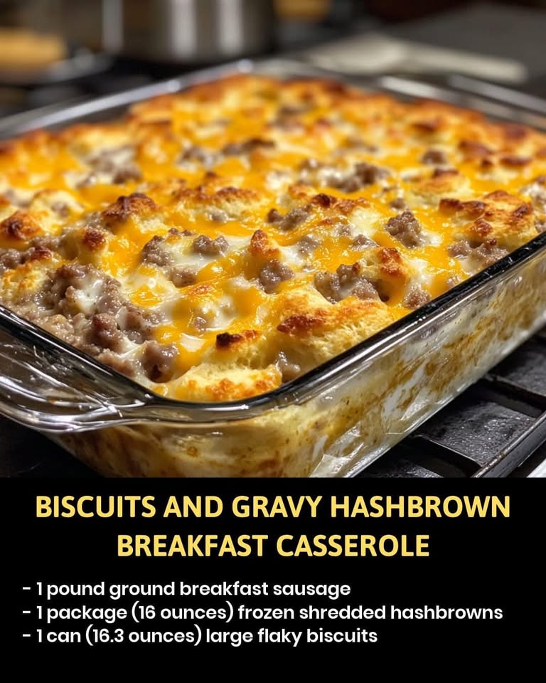 - Layer the Casserole: Sprinkle the cooked sausage evenly over the biscuit pieces. Add the 16-ounce package of frozen shredded hashbrowns on top of the sausage layer, spreading them out evenly. Finally, sprinkle 1 cup of shredded cheddar cheese across the top, which will melt and create a rich, gooey layer of flavor.