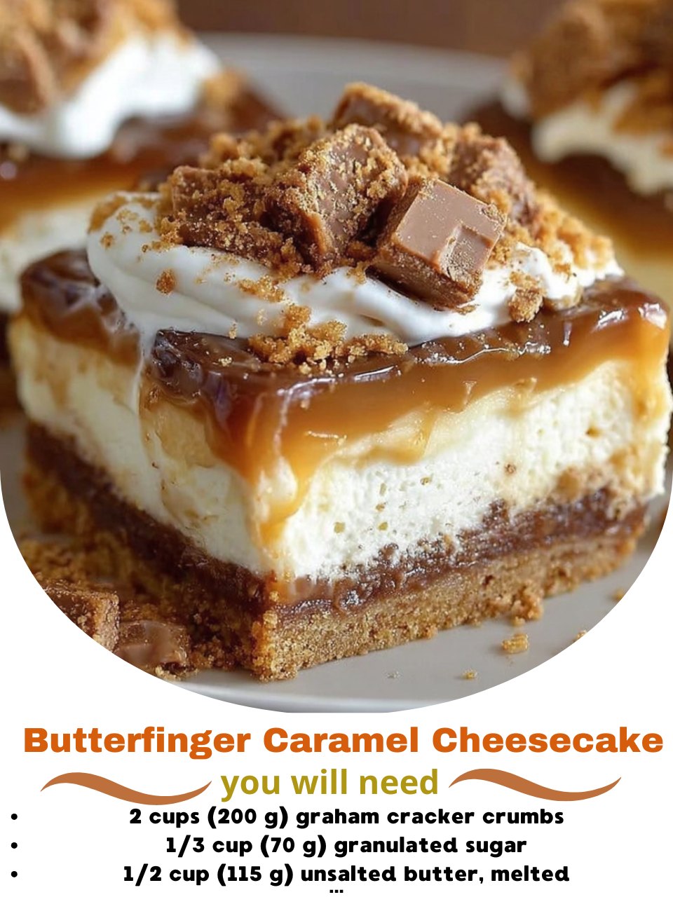 This Butterfinger Caramel Cheesecake is a dreamy combination of creamy cheesecake, rich caramel, and the irresistible crunch of Butterfingers. With a buttery, crumbly graham cracker crust, a smooth, velvety cheesecake filling, and a decadent caramel sauce drizzled on top, this cheesecake is a true indulgence. The addition of crushed Butterfinger candy bars adds a delightful crunch and a sweet, peanut buttery flavor that perfectly complements the creamy richness of the cheesecake.