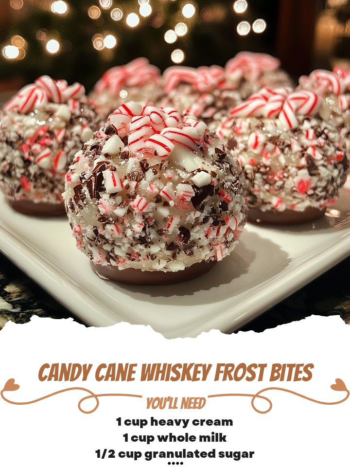 Each bite offers a delightful mix of creamy, sweet, and minty, making it the ultimate dessert for anyone who loves the classic holiday combination of mint and chocolate. The addition of whiskey gives these treats a grown-up twist that elevates the traditional festive flavor profile, while the crunchy candy cane topping adds a festive finish. Perfect for sharing or as a fun after-dinner dessert, these Candy Cane Whiskey Frost Bites are a true holiday indulgence.