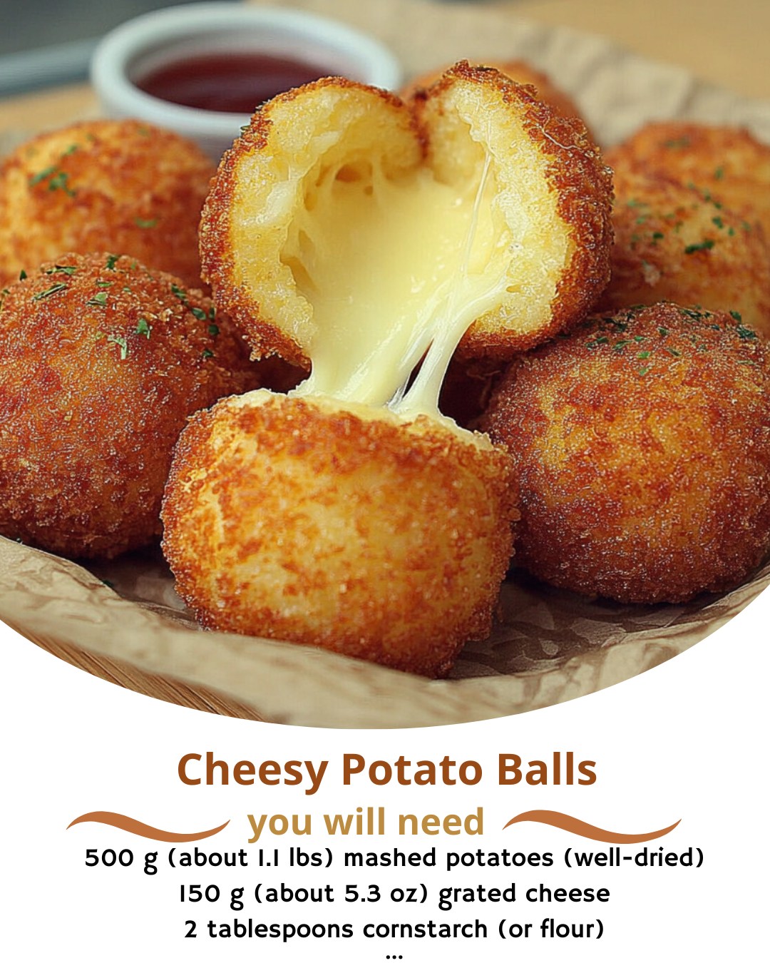 The combination of mashed potatoes, melted cheese, and a crispy coating creates a perfectly balanced bite, with the creaminess of the potatoes and cheese contrasting beautifully with the crunch of the outer layer. You can make them ahead of time, freeze them, and fry them whenever you’re ready for a warm, cheesy treat. Whether you’re serving them with a dipping sauce or enjoying them on their own, these Cheesy Potato Balls are always a crowd-pleaser.