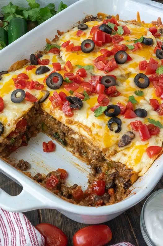 Taco Lasagna is the ultimate comfort food mash-up โ€” all the bold, zesty flavor of tacos layered like a classic lasagna. With seasoned beef, gooey cheese, soft tortillas, and your favorite taco toppings, this easy oven-baked casserole is hearty, cheesy, and always a crowd-pleaser. Perfect for weeknight dinners, meal prep, or family gatherings!