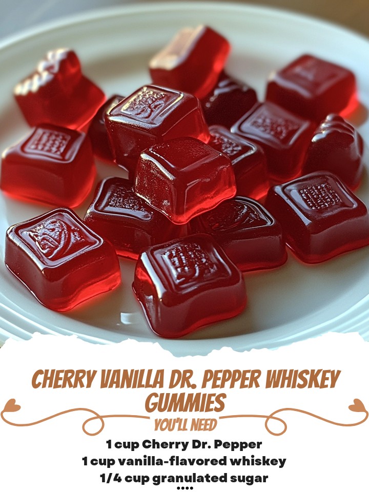 These Cherry Vanilla Dr. Pepper Whiskey Gummies are a fun, grown-up treat that combines the iconic flavors of Dr. Pepper, vanilla whiskey, and a hint of cherry for an unforgettable experience. With the perfect balance of sweet, spicy, and smooth flavors, these gummies are a unique twist on traditional gummy candies, and they’re perfect for parties, casual get-togethers, or just as a fun way to enjoy your favorite soda and whiskey in a new form!