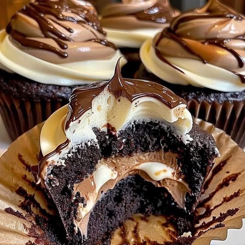 These Chocolate & Coffee Cream Cupcakes layer a deeply chocolatey, tender crumb with a cool, espresso‑laced cream center and a two‑tone swirl of vanilla and mocha buttercream. The batter is mixed in the classic order for lift and moisture—creaming butter with sugars, adding eggs and melted chocolate, alternating dry ingredients with buttermilk, then finishing with hot coffee for bloom and gloss. Once baked and fully cooled, each cupcake is cored and filled with fluffy coffee cream, topped with a striking vanilla‑and‑mocha swirl, and finished with a soft chocolate drizzle.
