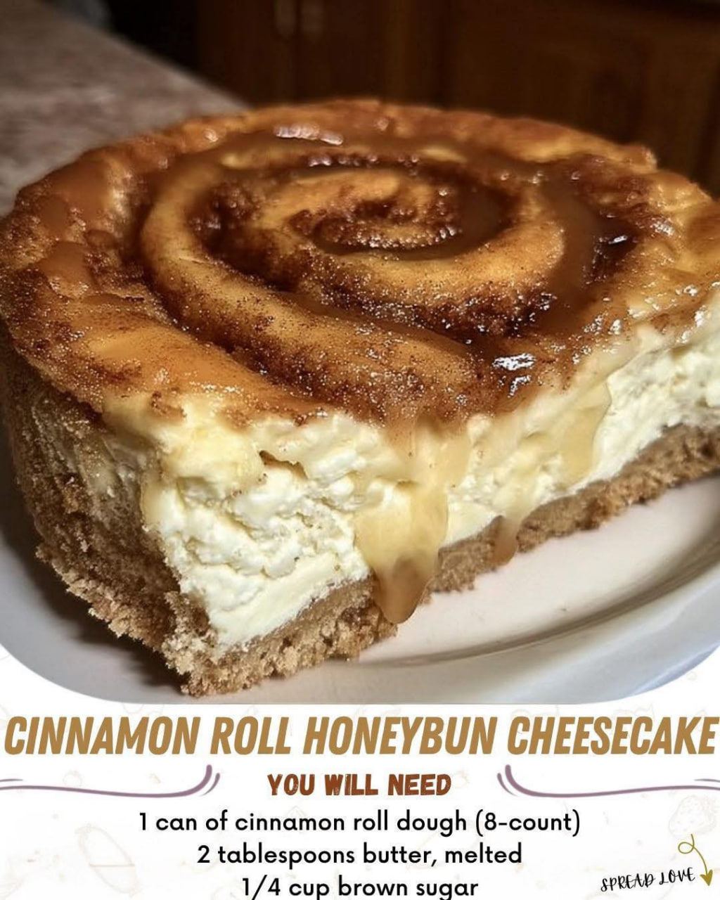 This Cinnamon Roll Honeybun Cheesecake is the ultimate fusion of two beloved classics β€” warm, gooey cinnamon rolls and silky, creamy cheesecake. With a buttery cinnamon roll crust, a rich honey-swirled topping, and layers of cozy cinnamon and cream cheese flavor, this dessert is pure comfort in every bite. Perfect for holidays, brunch, or a decadent dessert night, it’s a show-stopper that’s surprisingly easy to make!