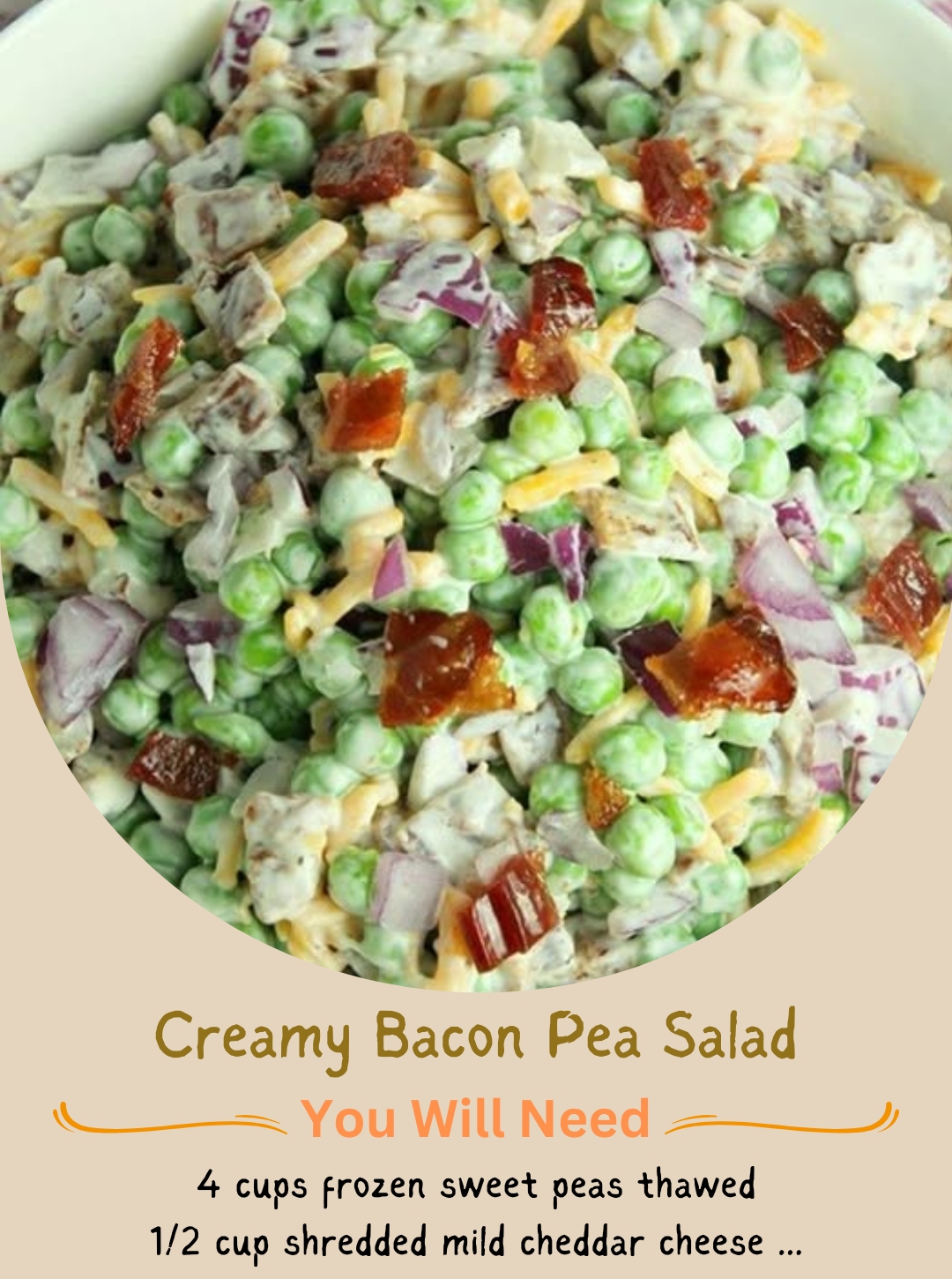 A classic cold side dish loaded with crispy bacon, sweet peas, sharp cheddar, and a tangy-sweet creamy dressing. Perfect for potlucks, BBQs, holidays, or any meal that needs a refreshing, savory side. Quick to mix together and even better after chilling, this salad is rich, crunchy, creamy, and incredibly satisfying.