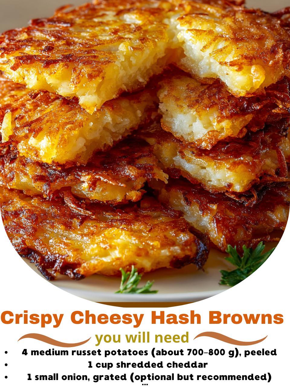 Crispy Cheesy Hash Browns are a deliciously indulgent take on the classic breakfast favorite. Golden, crispy potatoes are perfectly seasoned and packed with melted cheddar cheese, making them a savory, comforting side dish or breakfast treat. Whether you serve them alongside eggs or as a snack, these hash browns are sure to please any crowd. Let’s go through how to make these irresistible crispy, cheesy hash browns!