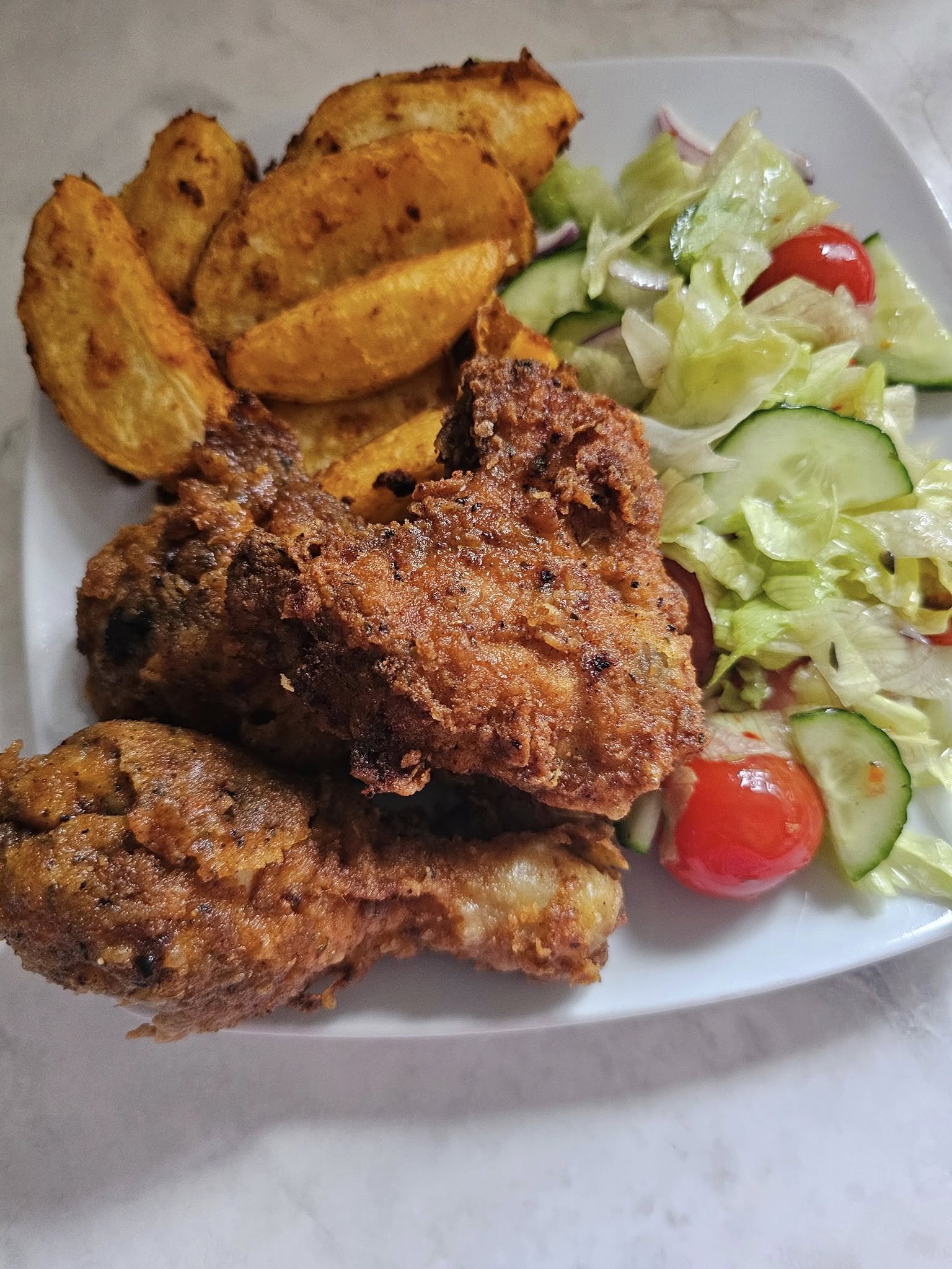 This golden crispy fried chicken is a true comfort food classic β€” perfectly seasoned, juicy on the inside, and shatteringly crunchy on the outside. Whether served with fries, mashed potatoes, or tucked into a fluffy biscuit, it’s the kind of meal that never goes out of style. Great for weekend treats, picnics, or when you just need that fried chicken fix at home.