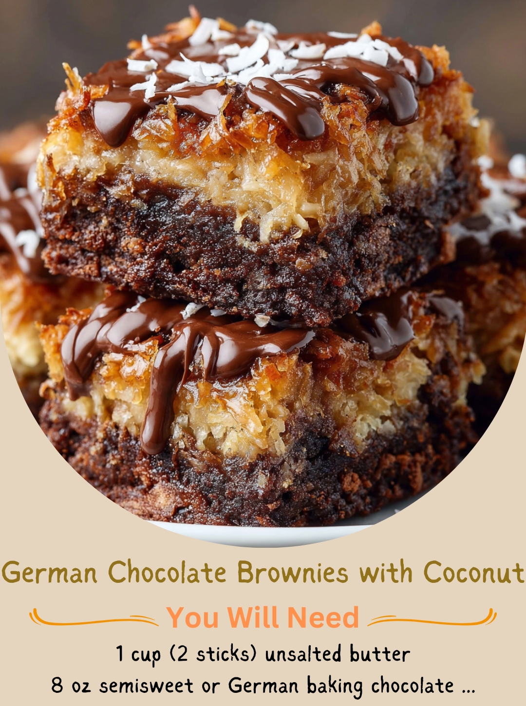 These German Chocolate Brownies combine rich, fudgy chocolate brownie layers with a decadent coconut pecan topping inspired by the classic German Chocolate Cake. With deep cocoa flavor, buttery crunch, and chewy coconut, this dessert delivers indulgence in every bite—perfect for holidays, potlucks, or when you’re craving something truly special.