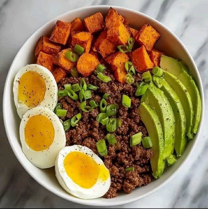 This Ground Beef & Sweet Potato Power Bowl is a hearty, balanced meal packed with protein, healthy fats, and wholesome carbs. Roasted sweet potatoes, savory ground beef, creamy avocado, and soft-boiled eggs come together for a nutritious and satisfying bowl that’s perfect for lunch, dinner, or post-workout fuel. Simple, flavorful, and ready in under 30 minutes!