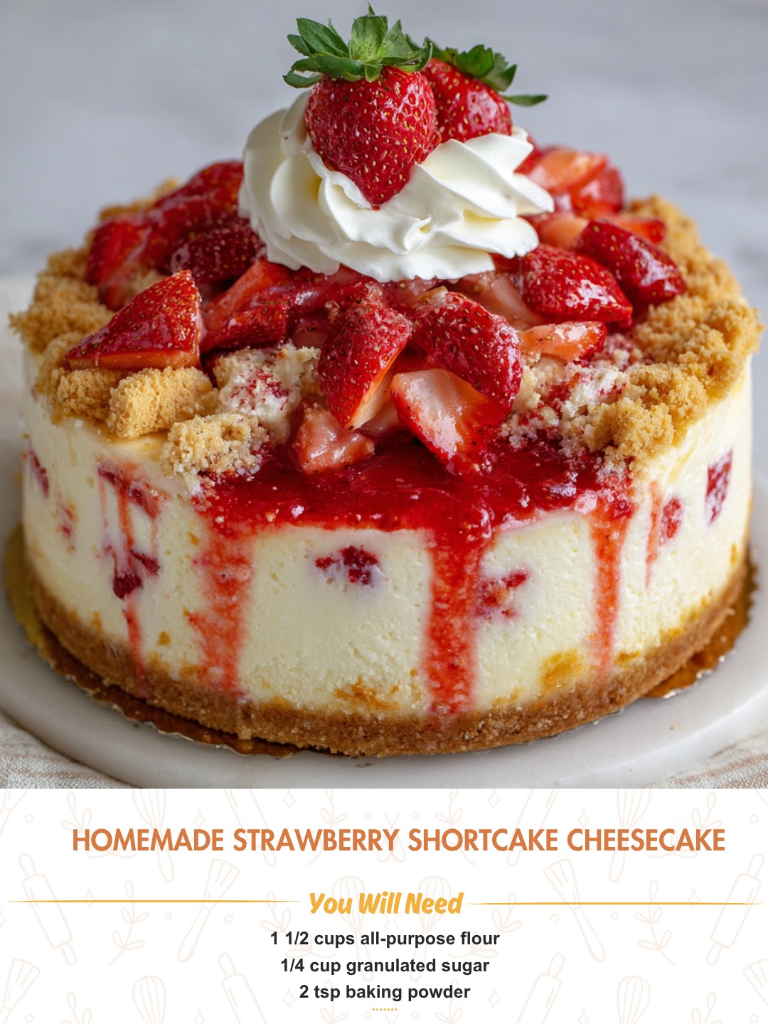 This Homemade Strawberry Shortcake Cheesecake combines two beloved desserts into one irresistible treat. The creamy, smooth cheesecake filling sits atop a buttery shortcake crust, and it’s all topped with fresh, juicy strawberries. Whether you’re serving it for a special occasion or simply craving a decadent dessert, this cheesecake will definitely steal the show. With its perfect balance of rich, tangy cheesecake and light, sweet shortcake, it’s the ultimate indulgence for strawberry lovers!