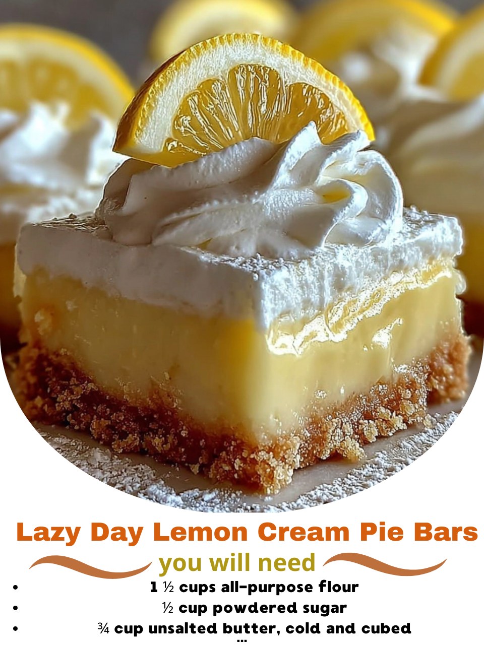 These bars are a great twist on the traditional lemon pie, providing all the tart and sweet flavors in an easy-to-serve bar form. The buttery crust and the rich, smooth lemon filling come together beautifully, making these Lazy Day Lemon Cream Pie Bars a crowd favorite!