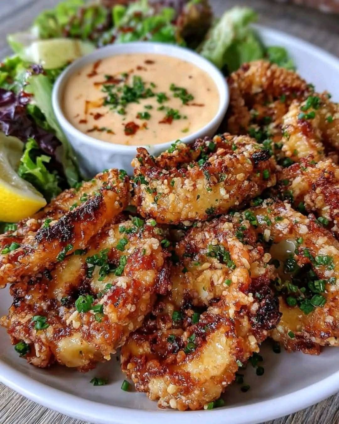 Bright, zesty, and irresistibly tender — this Lemon Garlic Calamari with Aioli is a restaurant-quality seafood dish you can make at home in under 30 minutes. Lightly coated and golden-fried calamari rings are tossed in a lemon-garlic glaze and served with a creamy aioli dip. It’s the perfect appetizer or light meal with a refreshing Mediterranean flair.
