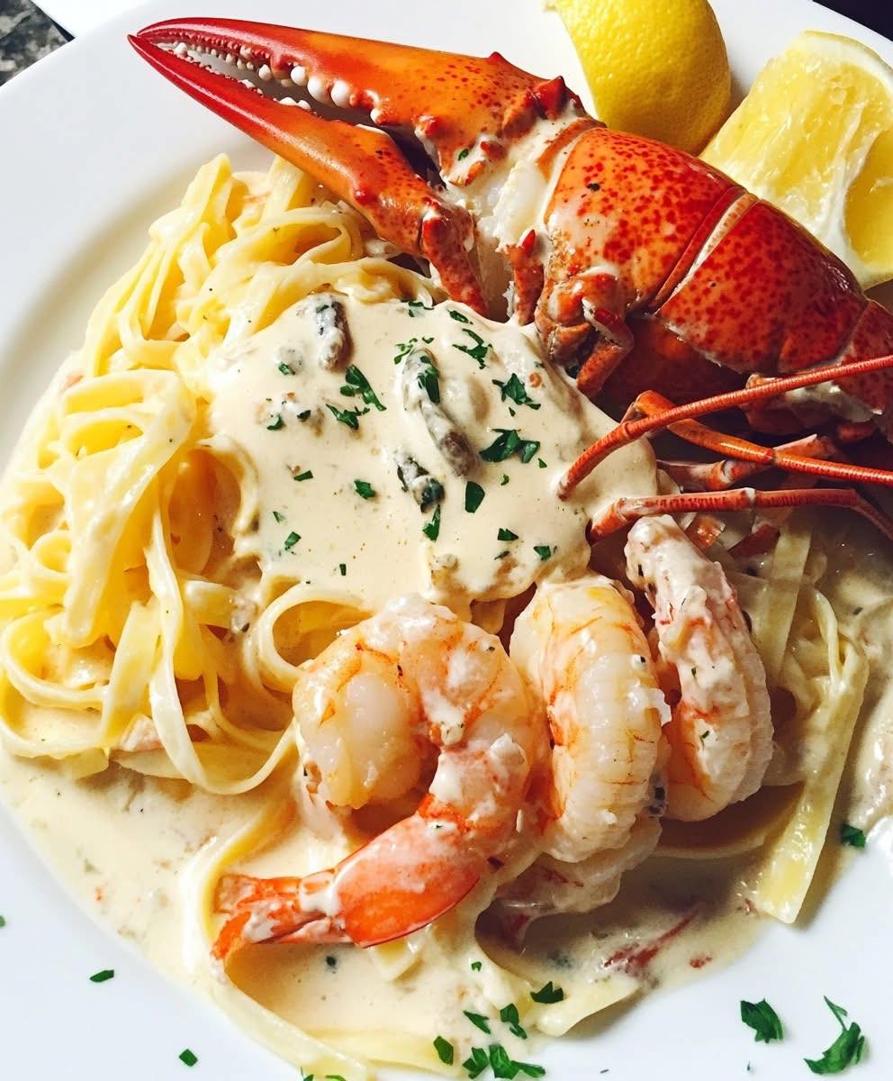 Lobster and Shrimp Fettuccine in Creamy Garlic Sauce
