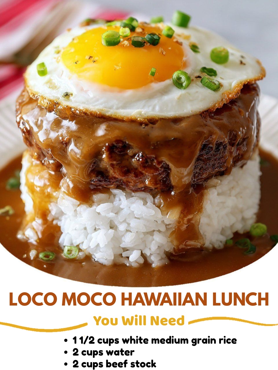 This Loco Moco Hawaiian Lunch brings island comfort to your table — a satisfying combination of fluffy white rice, a juicy beef patty, rich brown gravy, and a perfectly cooked sunny-side up egg. Each layer adds its own texture and flavor, creating a dish that’s hearty, comforting, and ready in about 40 minutes.