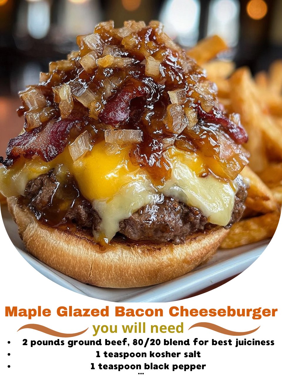 If you’re craving a cheeseburger with a little extra flair, this Maple Glazed Bacon Cheeseburger is sure to hit the spot. Combining the savory richness of a juicy beef patty, crispy bacon, and a sweet maple glaze, this burger delivers a perfect balance of smoky, sweet, and savory flavors. The glaze adds a unique, caramelized sweetness that elevates the classic cheeseburger to a whole new level, while the bacon gives it a delicious crunch. Whether you’re grilling for a crowd or enjoying a casual dinner, this burger is the ultimate indulgence.