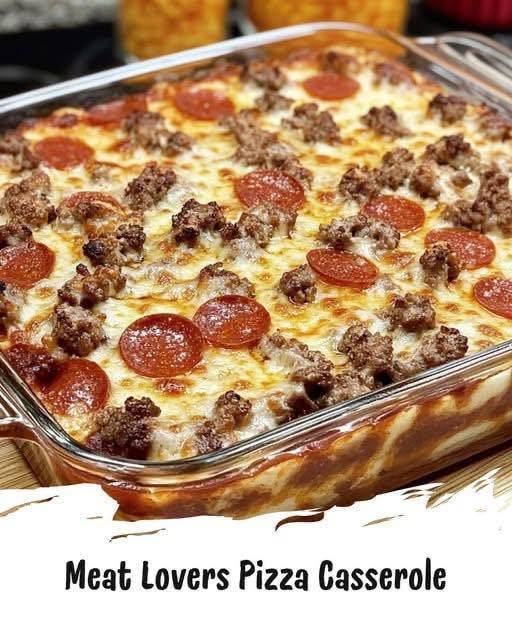 This hearty Meat Lovers Pizza Casserole brings together all the best parts of a classic pizza—rich marinara, savory meats, melted cheese, and a touch of Italian seasoning—combined with perfectly cooked pasta for a comforting, crowd-pleasing bake. Every layer delivers bold flavor, and the mix of sausage, pepperoni, and ground beef makes this dish especially satisfying. The casserole bakes into a cohesive, cheesy meal that slices nicely and reheats beautifully, making it ideal for family dinners, potlucks, or weekend meal prep.