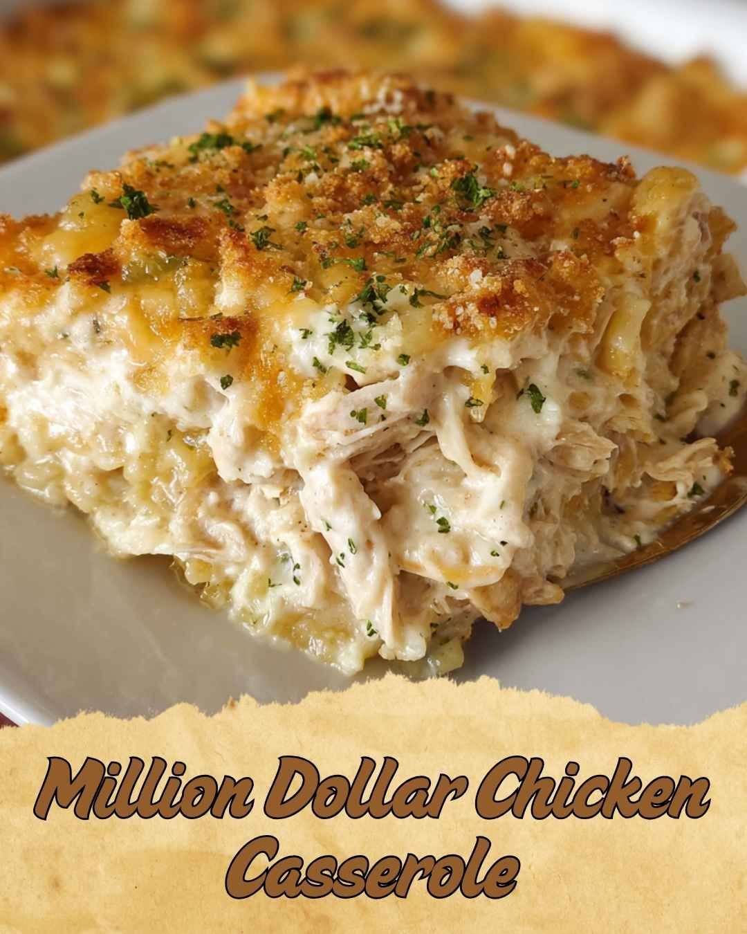 This Million Dollar Chicken Casserole is a creamy, comforting dish with tender shredded chicken, rich cheese, and a buttery Ritz cracker crust that’s simply irresistible. Packed with flavor and made with easy-to-find ingredients, this casserole is perfect for family dinners, potlucks, or special occasions. The rich filling combines cream cheese, sour cream, and chicken soup for a smooth, creamy texture, while the crunchy cracker topping adds the perfect balance of buttery goodness.