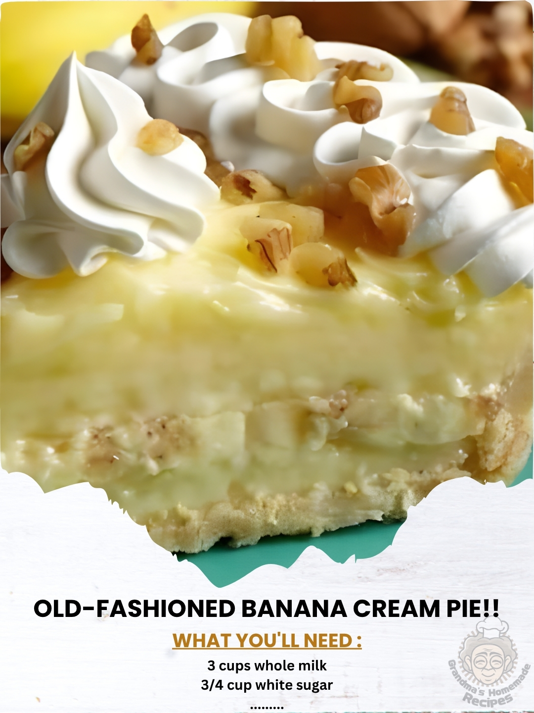 Old-Fashioned Banana Cream Pie โ a timeless classic with silky vanilla custard, buttery crust, and sweet banana slices layered inside. This pie is pure comfort dessert bliss, perfect for family gatherings, Sunday dinners, or anytime youโre craving a creamy, nostalgic treat! ๐๐