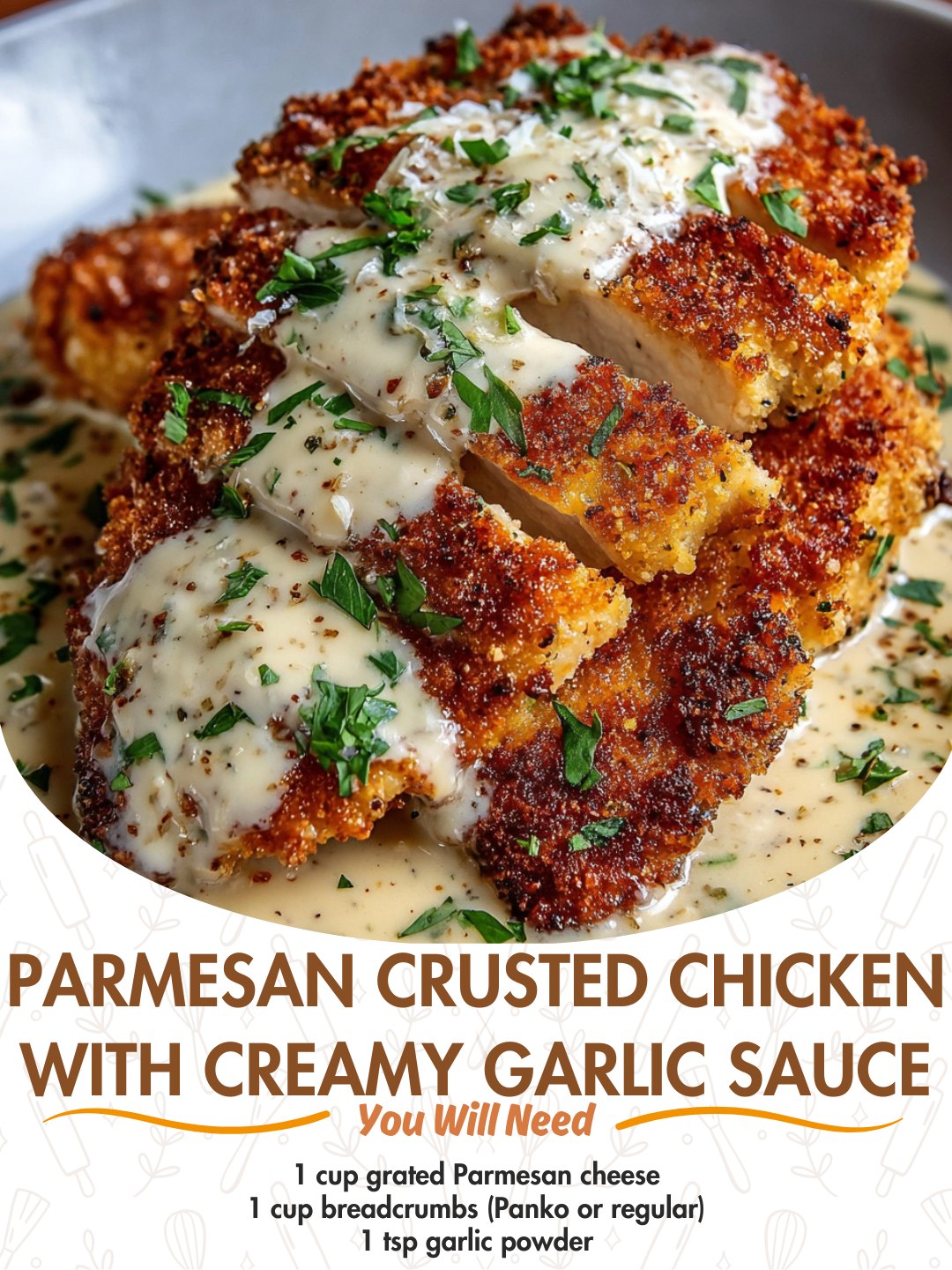Parmesan Crusted Chicken with Creamy Garlic Sauce πŸ§€πŸ—πŸ§„