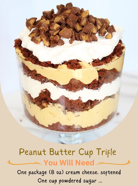 A rich, indulgent layered trifle featuring fudgy brownie cubes, creamy chocolate pudding, fluffy peanut butter cheesecake filling, and loads of chopped peanut butter cups. Every spoonful delivers chocolate–peanut butter bliss, making this the perfect no-fuss dessert for parties, potlucks, and celebrations.