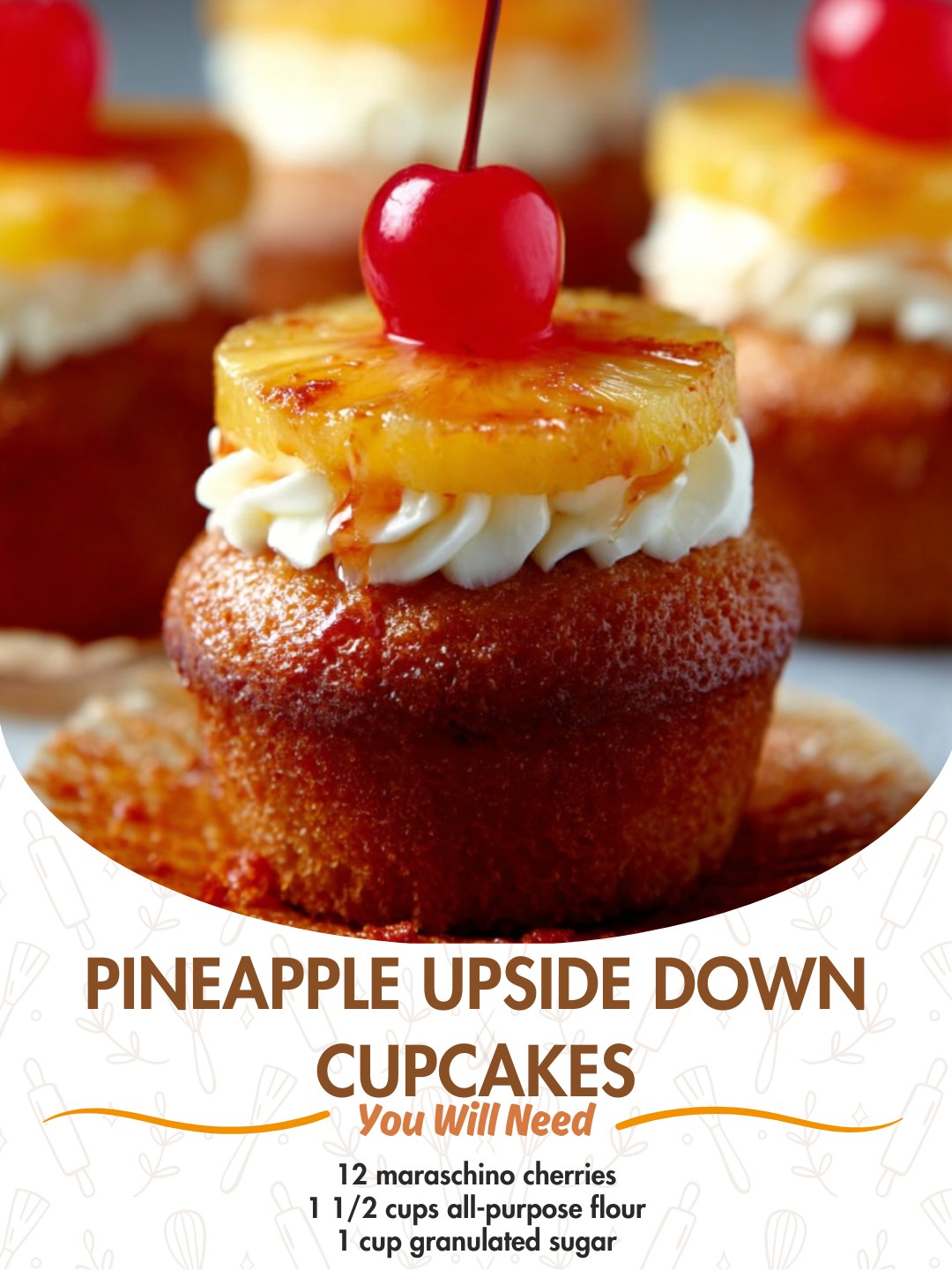 Pineapple Upside Down Cupcakes bring the classic, beloved dessert into a convenient, individual-sized portion. With a tender cake base, caramelized pineapple, and the sweet tang of maraschino cherries, these cupcakes offer the perfect balance of flavors and textures in every bite. Perfect for any occasion, these individual treats are just as delicious as the full-sized version, but without the need for slicing!
