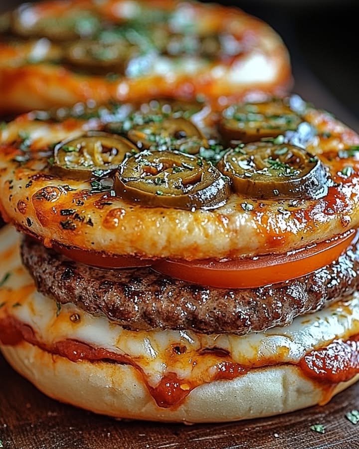 These Pizza Burgers combine two of the most crave-worthy comfort foods into one epic handheld meal! Juicy, seasoned burger patties meet melty mozzarella, savory marinara, and your favorite pizza toppings — all stacked on a toasted bun. Whether you’re grilling out or cooking indoors, this burger-pizza hybrid is a fun and flavorful twist that everyone will love. 🍕🍔