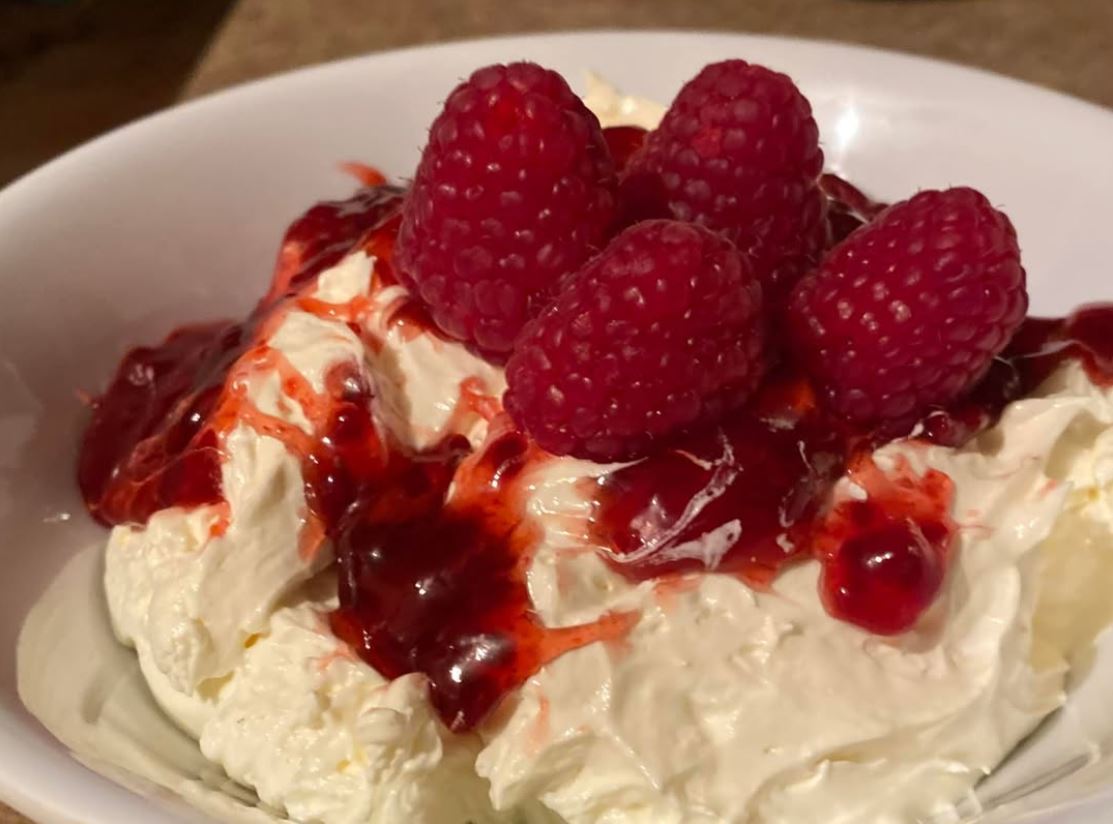 There’s nothing better on a cozy evening — especially one filled with snowflakes outside and warmth inside — than a spoonful of something sweet and luscious. This Raspberry Delight is just that: a cloud-like dessert that’s rich, tangy, and beautifully simple to make. Made with marshmallow cream, Cool Whip, whipped cream cheese, and a touch of raspberry pie filling, it’s an indulgent treat that feels both elegant and comforting. 🍇❄️