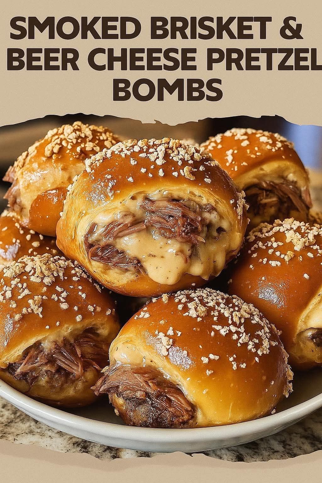 Smoked Brisket & Beer Cheese Pretzel Bombs — soft, golden pretzel bites stuffed with smoky brisket and gooey beer cheese! These savory bites combine BBQ flavor with buttery pretzel dough and are perfect for game day, parties, or a cozy appetizer platter. 🥨🧀🔥