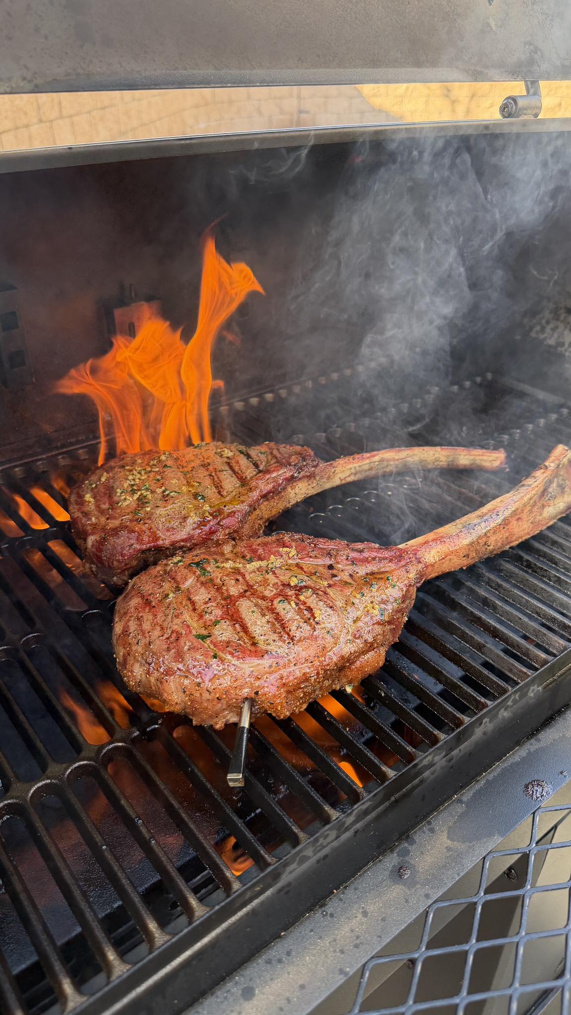 - 2 tomahawk ribeye steaks (2–3 lbs each, at least 2 inches thick)