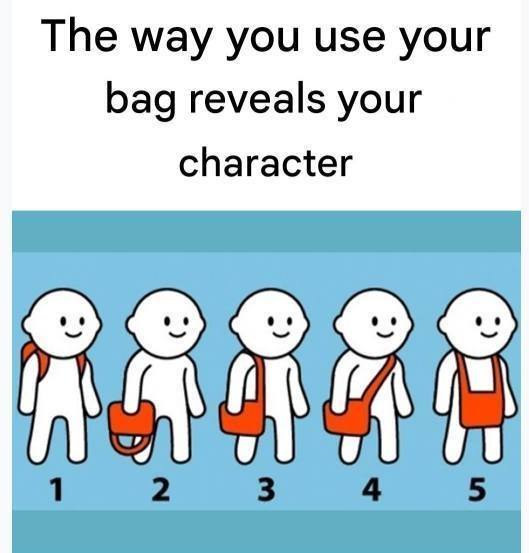 2. Carrying in hand If you like to carry your bag and other belongings in your hand, it means that you like to do everything completely and be in control of everything. You always want to be informed about what is going on and you have an opinion about everything. You are a simple but also reliable person.