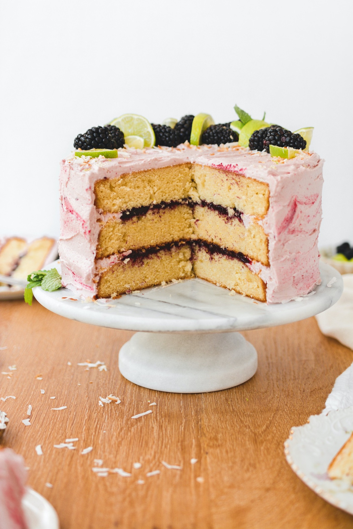 This Vanilla Layer Cake with Blackberry Filling and Lime-Blackberry Garnish is a fresh and elegant dessert, perfect for spring and summer celebrations. Fluffy vanilla sponge layers are filled with a rich, jewel-toned blackberry compote and frosted with smooth blackberry-infused buttercream. Finished with a vibrant garnish of fresh blackberries, lime slices, and mint leaves, it’s a visually stunning and flavor-packed centerpiece that strikes a perfect balance between sweet, tart, and creamy.
